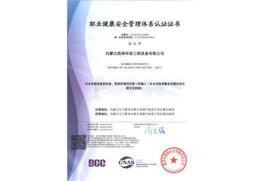 职业康健清静治理系统认证证书